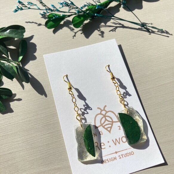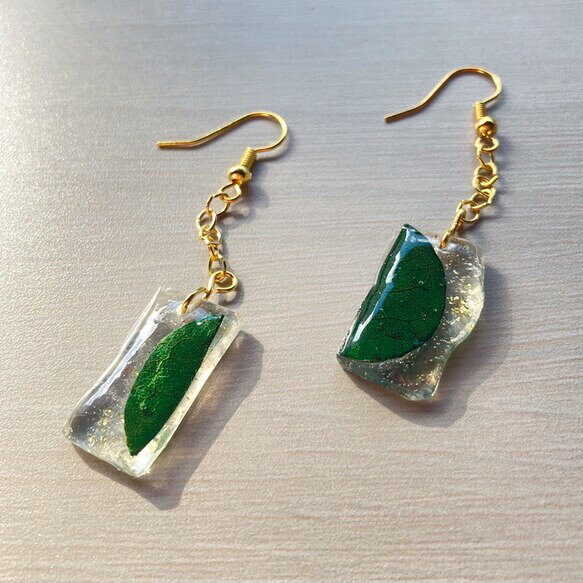 レジンピアス リーフ×ラメ ボタニカル rp-11【レジンピアス ヘアアクセサリー 上品 カジュアル 大人っぽい ギフト 誕生日 プレゼント おしゃれ かわいい おうち ポイント消化 ファッション fashion ハンドメイド 人気 】