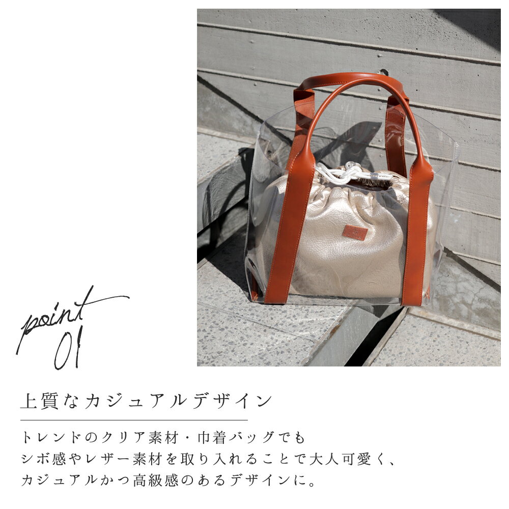 【夏秋の大人かわいいトートバッグ】 【セパレートで使える2way仕様】 大人気PVCクリア素材と、ナチュラルなシボ感が素敵なトートバッグが新登場。