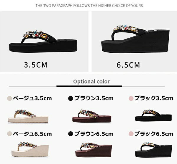 トングサンダル ビーチ キラキラ ヒール3.5/6.5 ミュール ウェッジソール 厚底ビーチ レディース コンフォート 歩きやすい カジュアル かわいい 21.5/22.0/22.5/23.0/23.5/24.0/24.5/25.0/25.5/26.0 黒 ベージュ 茶色 di081x1x1d4