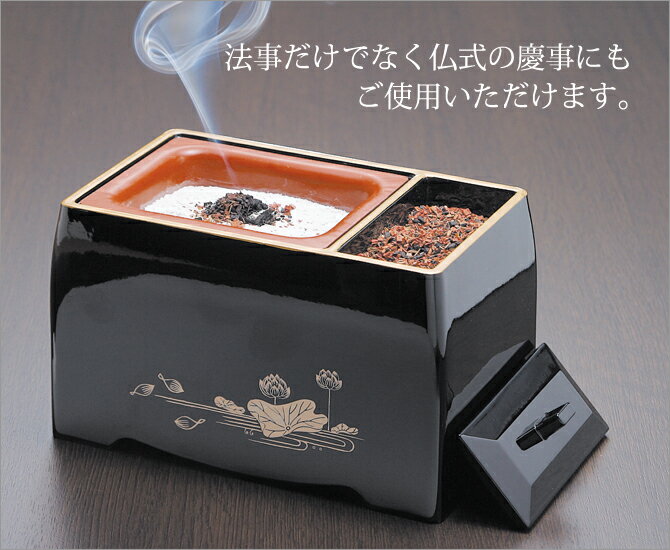 材質: 香炉・焼香盆:フェノール樹脂(ウレタン塗装) 香炉落とし部:スチール 灰ならし:スチール(金メッキ加工) 香炉灰:灰 お香:白檀 サイズ(約): 32×15×10cm 重量(約): 800g 生産国: 日本製(Made in Japan) セット内容: 香炉・焼香盆・香炉灰・灰ならし・香炭・白檀お香 ご注意: 香炉おとし部以外で火を使わないでください。