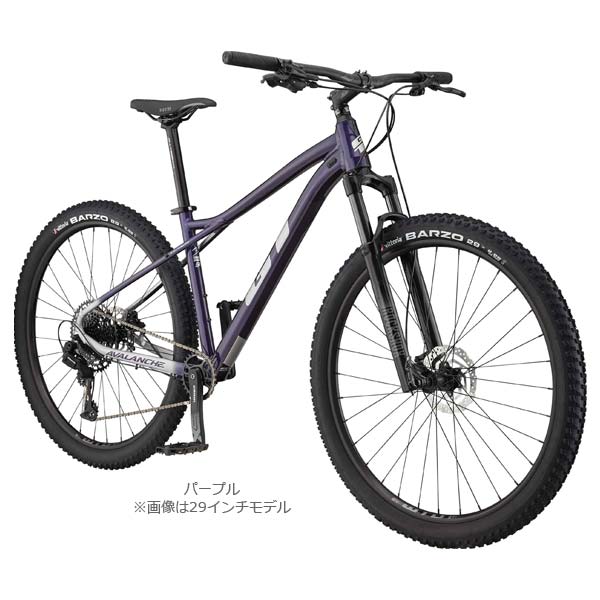スペックカラーブラック パープルサイズブラック:【27.5″】XS、S、M、L パープル:【27.5″】S、M重量【27.5″】13.66Kg(Mサイズ)フレームGT 6061 T6 アルミニウム、Triple Triangle フローティングシートステー、インターナルケーブルルーティング、ドロッパーポストルーティング、Boost 141 鍛造ドロップアウト、ゼロスタック 1 1/8″- 1.5″ ヘッドフォークRockShox Recon Silver RL、120mmトラベル、リモートロックアウト、Maxle Lite、42mm オフセットヘッドセットセミインテグレーテッド、シールド カートリッジ、テーパーステムGT All Terra 3D鍛造アルミニウム、31.8mm、7°、80mmハンドルバーGT All Terra アルミニウム ライザー、ダブルバテッド、15mm ライズ、9°スウィープ、5°ライズ、740mm 幅シフターSRAM SX Eagle、12スピードフロントディレーラー-リアディレーラーSRAM SX EagleクランクSRAM SX Eagle Power Spline、32TBBTruvativ Power Spline、73mmチェーンSRAM SX Eagle, 12-speedスプロケットSRAM Eagle、11-50T、12スピードブレーキTektro HD-M520 jeminiSL 油圧ディスク、TR160-19 160mmローターサドルWTB Silverado SportシートポストGT All Terra、アルミニウム、30.9mmリム/ホイールWTB ST i25 TCS 2.0、32H、チューブレスレディ、フレンチバルブハブShimano、(F)MT400、15×100、(R)MT200、QRx141タイヤVittoria Barzo、27.5 x 2.25″、ワイヤービードアクセサリーGT Slim Line フラットペダルジオメトリーサイズXS(360)S(400)M(440)L(480)ホリゾンタル換算トップチューブ長(cm)53.956.659.462.1ヘッドチューブ角(°)67.0°67.0°67.0°67.0°シートチューブ角(°)74.5°74.5°74.5°74.5°ヘッドチューブ長(cm)9.510.511.512.5BBドロップ(cm)5555BBハイト(cm)30.330.330.330.3チェーンステー長(cm)43.543.543.543.5フロントセンター長(cm)65.268.17173.8ホイールベース(cm)108.2111.1114116.9スタンドオーバー高(cm)69717376フォークオフセット(cm)4.24.24.24.2リーチ(cm)37.54042.545スタック(cm)596060.961.8適応身長目安(cm)155〜165160〜175170〜185180〜195自転車を安全・快適にご使用いただくために●自転車を安全で快適にご使用いただくために、お近くの自転車店にて定期的な点検をしてください。