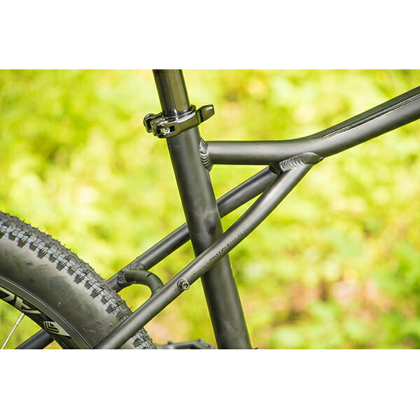 トップチューブは大きなスローピングと軽いカーブのおかげで、街中でもトレイルでも足つきが良く、フレンドリーな乗り心地を実現した。