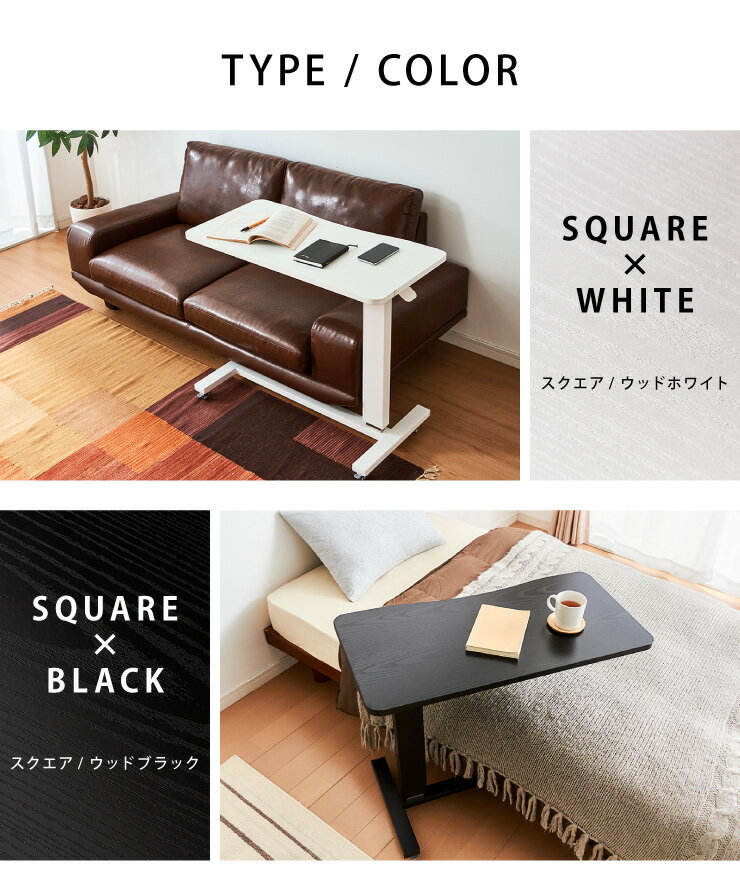 《スペック》◆タイプ スクエア・ラウンド◆カラー ウッドブラック・ウッドホワイト◆素材:甲板の表面材/合成樹脂化粧繊維板(メラミン樹脂)◆表面加工:脚部/粉体塗装、めっき(クロム)※要組み立て※必要工具/六角レンチスパナ(付属あり)【スクエア】サイズ:幅80×奥行40×高さ67〜97cm脚部の高さ:7cm重量:11.5kg耐荷重:約20kg【ラウンド】サイズ:幅60.5×奥行60×高さ67〜97cm脚部の高さ:7cm重量:10.8kg耐荷重:約20kg【送料について】北海道、沖縄、離島は別途送料を頂きます。