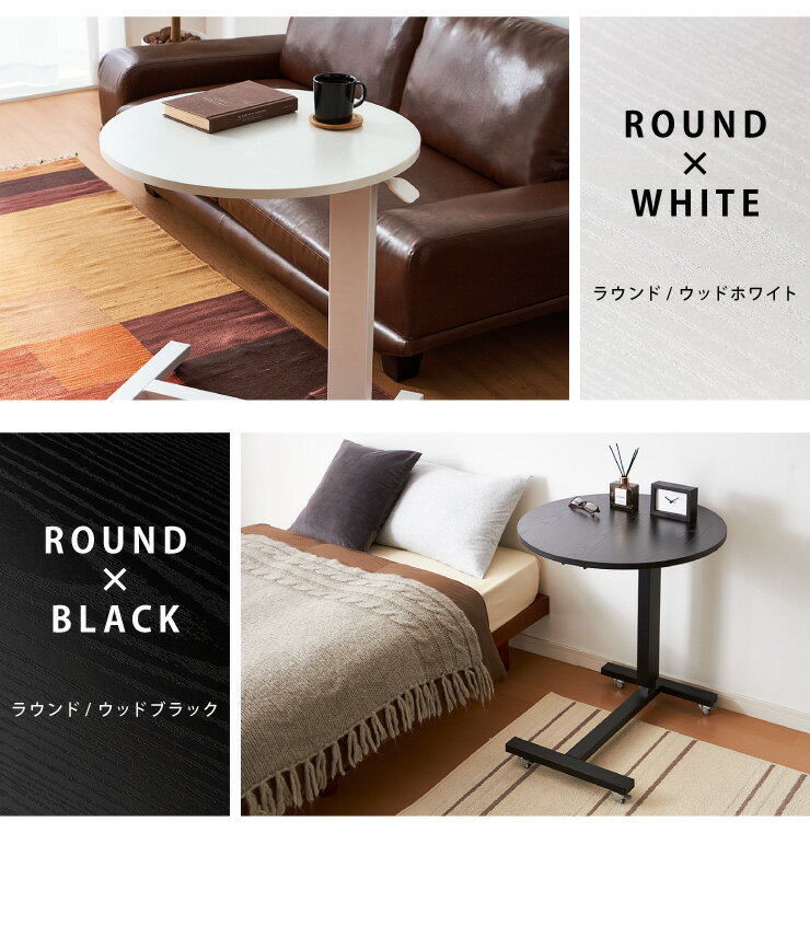 ガス圧 昇降式マルチテーブル 高さ67~97cm キャスター付き ラウンド サイドテーブル テーブル スクエア ベッドサイド【送料無料】
