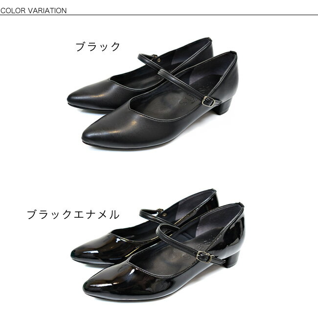 ●カラー:ブラック・ブラックエナメル ●サイズ:22.5/23.0/23.5/24.0/24.5 ●ヒール高さ:約3cm ●ワイズ:2E+ ●重さ:約180g (※23.5cm/片足) ●素材:表皮:合成皮革 ソール:合成ゴム ※実寸で測ったものです。