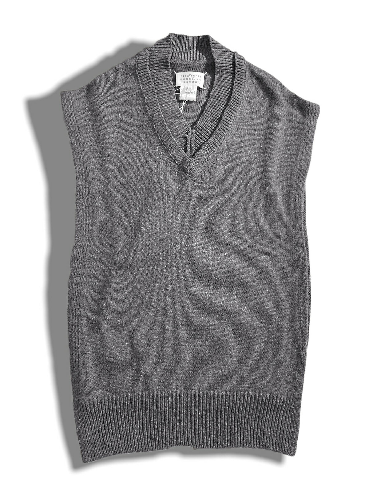 【定価90,200円(税込)】Maison Margiela メゾンマルジェラ ランダムに揺れ動くエレガントな二つ折りデザイン!最上級ウールを使用したリネンウール混タバード!ポンチョ ベスト カーディガン ノースリーブ ウール SI1TH0001 グレー イタリア製 男女兼用 ユニセックス