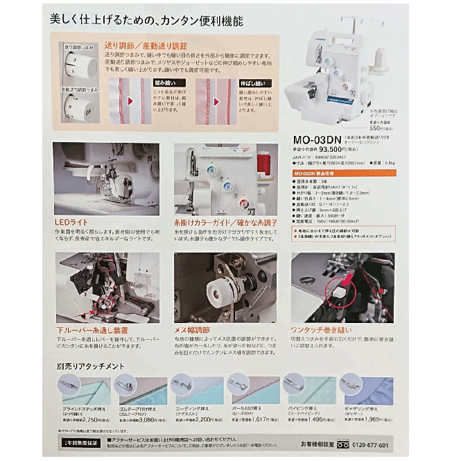 ↓MO-03DN専用 アタッチメントはこちら↓ ■ブラインドステッチ押え■ コチラから ■ギャザリング押え■ コチラから ■ゴムテープ付け押え■ コチラから ■コーディング押え■ コチラから ■パール付け押え■ コチラから ■パイピング押え■ コチラから ■6点のお得な押えセット プロキット■ コチラから