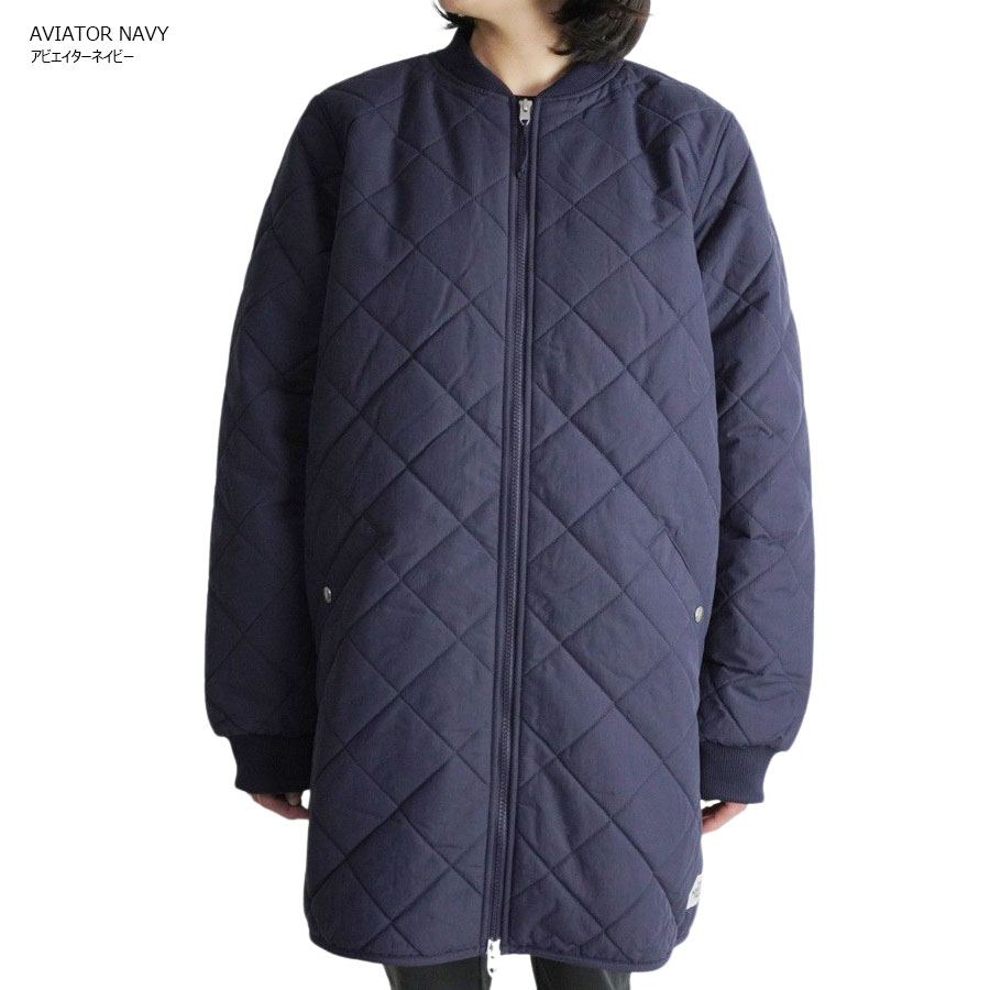 カジュアルなキルティングデザイン、お尻が隠れる長め丈で、100%リサイクルポリエステルシェルパフリースの裏地付きです。