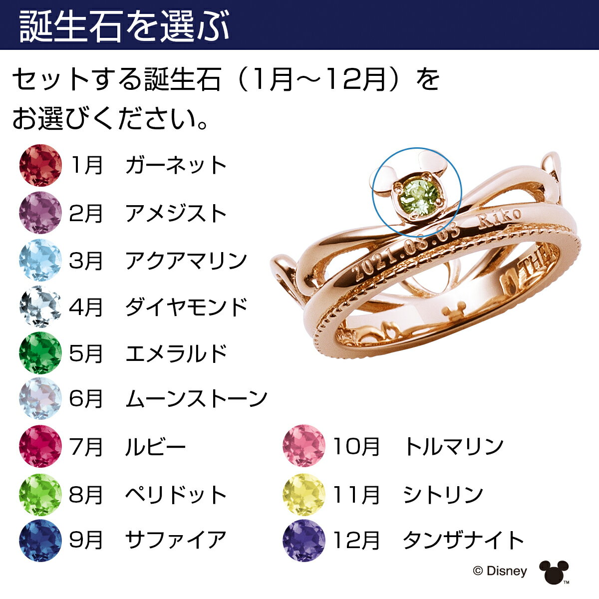 中央のミッキーのモチーフにお好きな誕生石をセットして特別感をプラス。