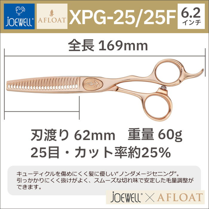 メーカー希望小売価格はメーカーカタログに基づいて掲載しています (上記テキストクリックでカタログを表示します) 【はさみ プロ用シザー 鋏 ハサミ トリミング トリマー セルフカット お手入れ用品】【JOEWELL x AFLOAT】ジョーウェル ピンクゴールド XPG-25/25F 商品詳細 JOEWELL x AFLOAT “ノンダメージ”セニングシザーズ ジョーウェル ピンクゴールド XPG-25/25F キューティクルを傷めにくく髪に優しい“ノンダメージセニング”。