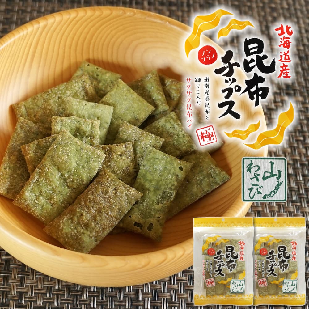 おつまみ 昆布 チップ 30g×2袋 山わさび味 ノンフライ スナック 昆布 粉末 ピリ辛 パリッと食感 高級真昆布 ポイント消化