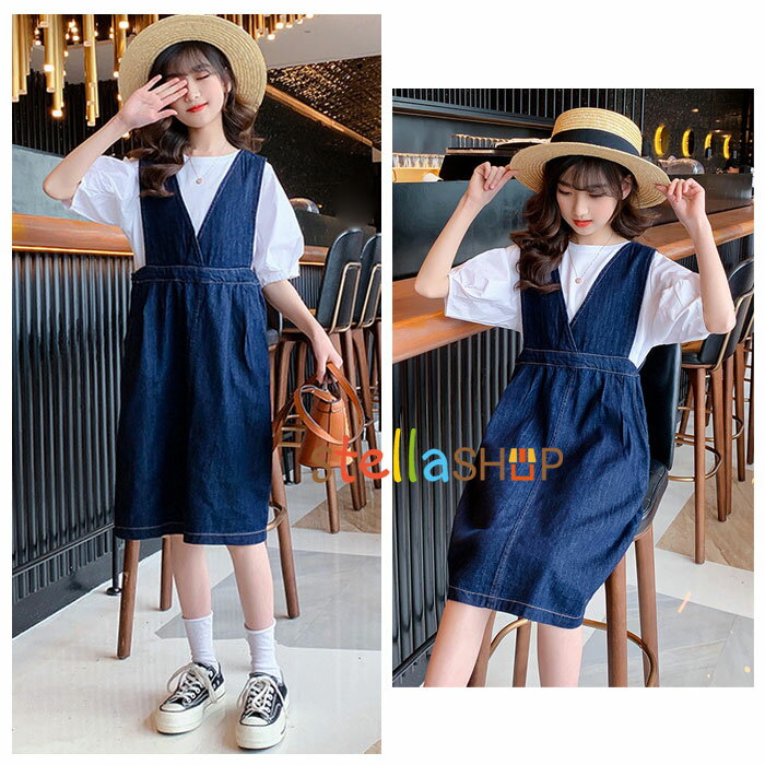 韓国子供服 女の子 夏服 可愛い レジャー 2点セット キッズ セットアップ 普段着 通学着 女の子 セットアップ 半袖 シャツ 無地 デニム ジャンパースカート ファッション 結婚式 呼ばれ 同窓会 子ども セットアップ 女児 夏着 切り替え お洒落 120 130 140 150 160 170